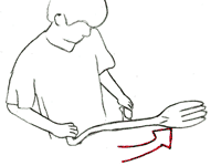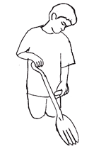 | 1. Thrust into ground | 2. Lift up dirt | 3. Dump dirt by tilting shovel |