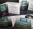 My goal for this project was to create a new mail advertisement which highlights the ability of new Macs to run both Mac OS X and Windows. Included in the mailer will be a CD with an interactive Flash demonstration of the Mac's ability to run both Mac OS X and Windows, as well as providing other reasons to "switch." Key points and guidelines to achieving this goal included: